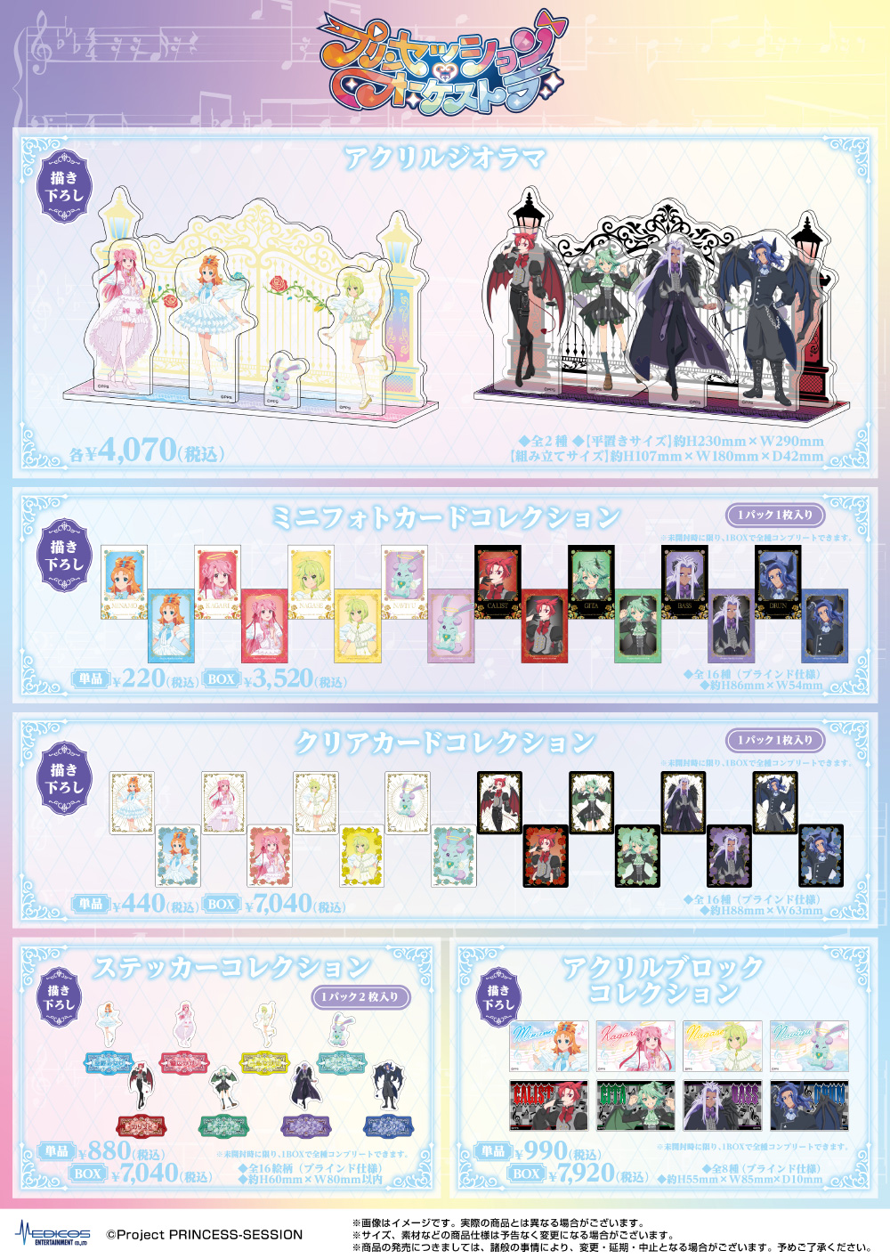 「シグナル・リリカル」特典はプリンセス・リップルの絵柄、「RISE PHOENIX」特典はプリンセス・ジールの絵柄、「KIRA☆GIRA INFINITE!」特典はプリンセス・ミーティアの絵柄、「雪花繚乱」特典はプリンセス・ヴィオラ×プリンセス・ネージュの絵柄を予定しております。
