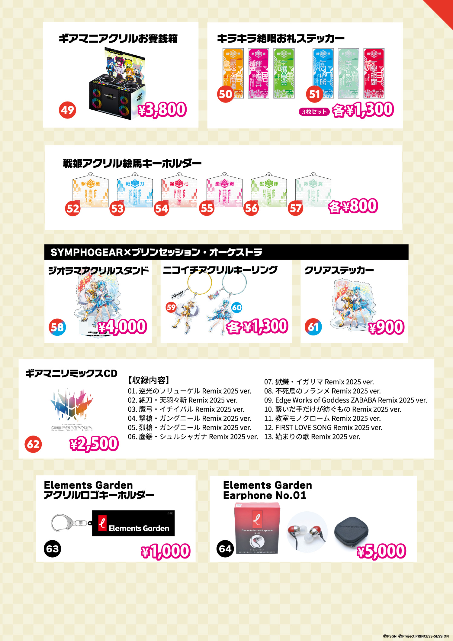 2025年12月30日(火)・31日(水)コミックマーケット107「戦姫絶唱シンフォギア」×「プリンセッション・オーケストラ」企業ブースにて販売した、コラボグッズにつきまして、事後通販が決定いたしました。当日会場にお越しいただけなかった方や購入を逃してしまったアイテムなど、この機会にぜひご注文ください。