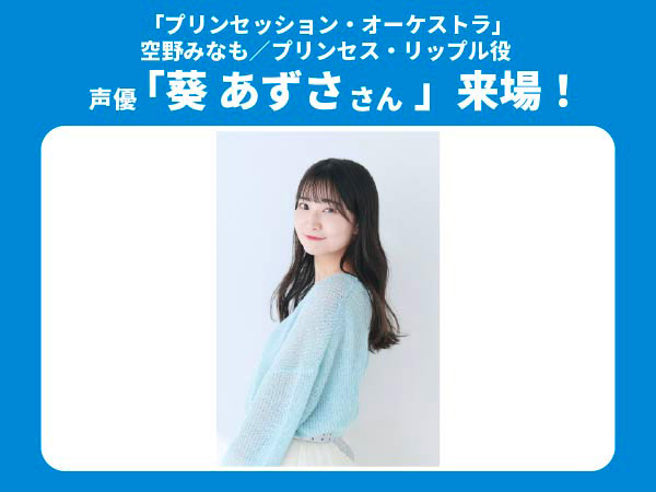 空野みなも/プリンセス・リップルを演じさせて頂きます、葵 あずさです。魅力的なキャラクターがいっぱいの本作ですが、オーディションの時からみなもちゃんの一所懸命な言葉に惹かれ「絶対この子を演じたい!」と思っていました。合格の連絡を受けた時嬉しくて仕方ありませんでした。私がみなもちゃんを通して感じた気持ちを1ミリたりとも逃さないで声にのせたいです!たくさんの方に届きますように。どうぞよろしくお願いします!